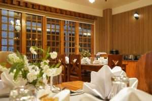 Our hotel’s all-day dining restaurant offers a diverse range of cuisine options for guests to enjoy, with the added opportunity to dine outdoors while appreciating scenic views and the peaceful sounds of a nearby stream. Guests can also savor freshly brewed coffee in the serene lush green forest setting, surrounded by the harmonious melodies of birdsong. The on-site restaurant, Overland, presents a variety of international dining choices. Unwind in our elegant and spacious restaurant with an adjoining bar, perfect for relaxation post a business meeting or a day of exploration. Treat yourself to our selection of local and imported spirits, cocktails, mocktails, wines, and local Ara (Bhutanese wine), accompanied by a delightful assortment of snacks.